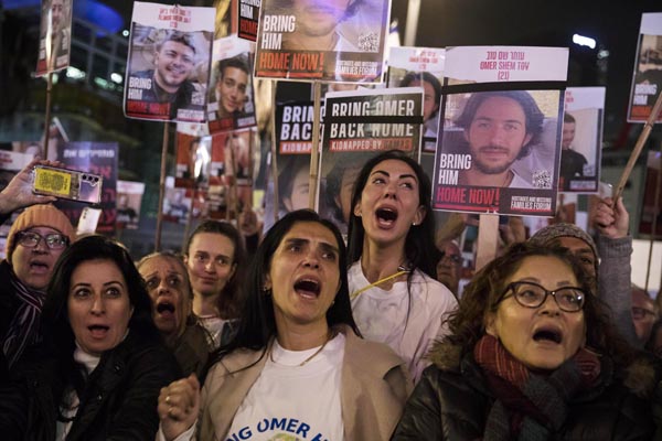 イスラエル国内でもデモが起きた(C)ゲッティ=共同