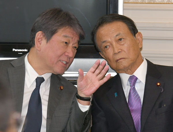 派閥に固執(自民党の麻生太郎副総裁と茂木敏充幹事長=左)/(C)日刊ゲンダイ