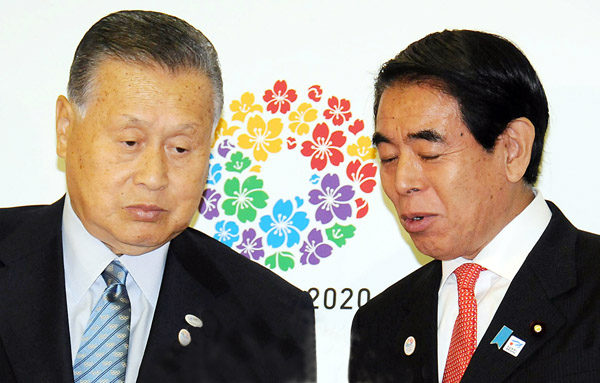 不和のきっかけは五輪スタジアム(左から、森元首相と下村元文科相=2014年撮影)/(C)日刊ゲンダイ
