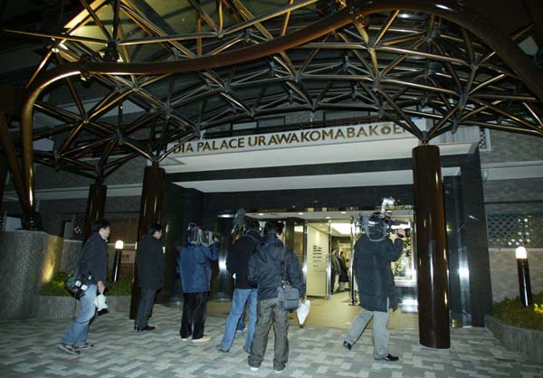 小川の自宅マンションに集まる報道陣(C)日刊ゲンダイ