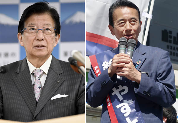 注目の争点は、“自民党”ではなく、辞職した川勝平太知事(左)の路線を続けるか否か、だというが…(右は、立憲民主、国民民主推薦の鈴木康友候補)/(C)日刊ゲンダイ