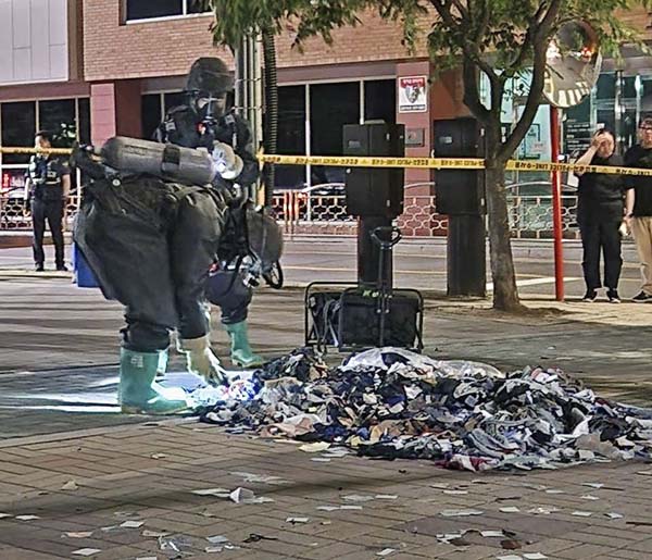 韓国・京畿道坡州市で発見された、飛来物に入っていたビニールなどのごみを回収する韓国軍兵士(韓国国防省提供・共同)