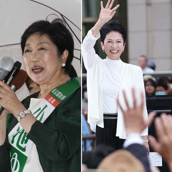 3選に向けアクセルの小池都知事(左)、追い上げ迫る蓮舫氏(C)日刊ゲンダイ