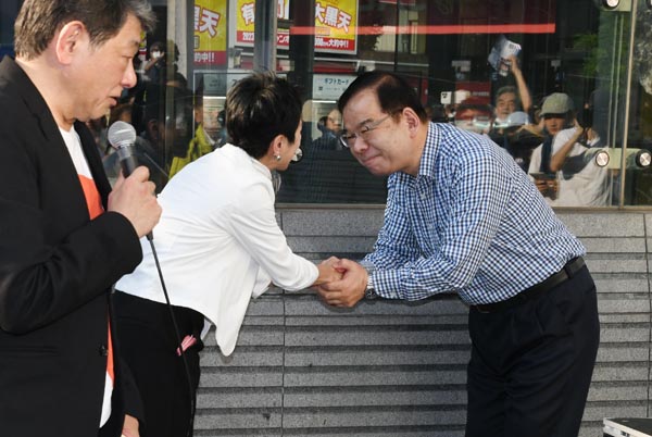 蓮舫氏の街宣に駆けつけて応援した田村智子・日本共産党委員長(右)/(C)日刊ゲンダイ