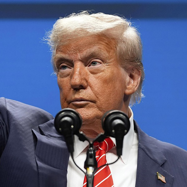 オランダ・ハーグで記者会見するトランプ米大統領(C)AP=共同