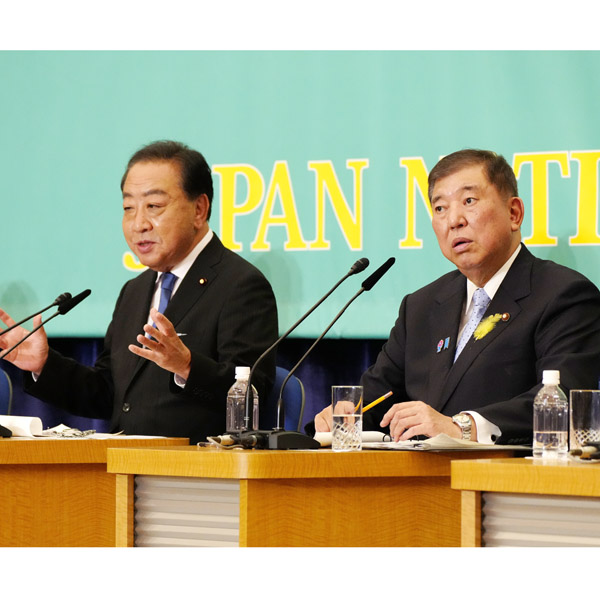 与党の過半数割れは絵空事じゃない(党首討論で発言する立憲民主・野田代表、右は石破首相)/(C)共同通信社