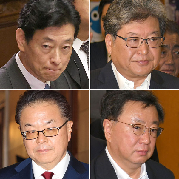 裏金事件の“震源地”(左上から時計回りに旧安倍派幹部の西村、萩生田、松野、世耕4氏)/(C)日刊ゲンダイ