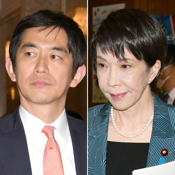 コバホークこと小林鷹之氏(左)は威勢のいい発言を展開、高市氏は世論の人気は高いが…(C)日刊ゲンダイ