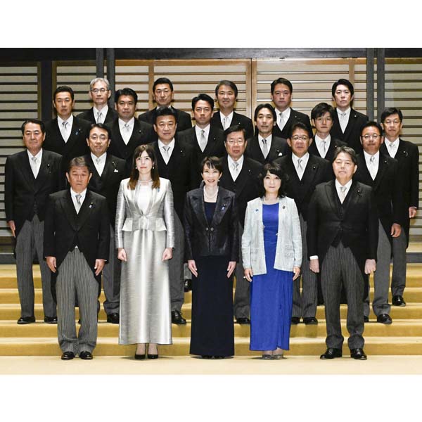 高市早苗首相(前列中央)と閣僚ら(C)共同通信社