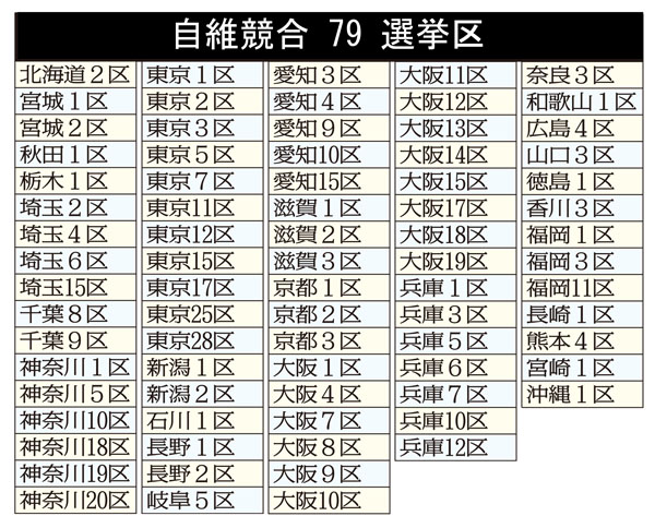 自民党と日本維新の会が競合する79選挙区(C)日刊ゲンダイ