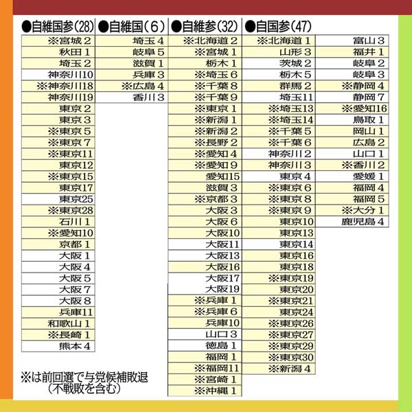 【表あり】衆院選は自維国参から候補者乱立 保守票争奪で共倒れ必至“バトルロワイヤル”113選挙区