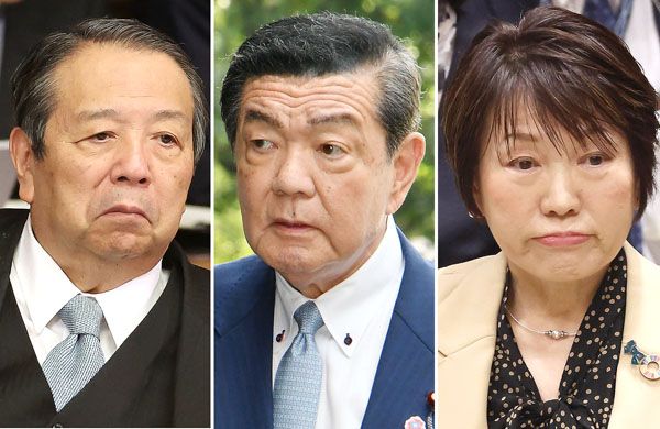 絶望…(左から村上誠一郎前総務相、伊東良孝前沖縄北方担当相、阿部俊子前文科相)/(C)日刊ゲンダイ