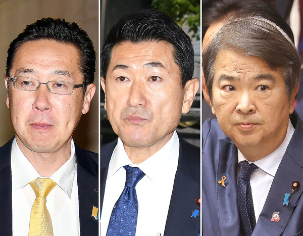 決して安泰ではない(左から黄川田地方再生相、赤間国家公安委員長、石原環境相)/(C)日刊ゲンダイ