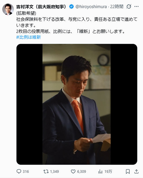 妙に演技が上手い(吉村洋文氏の公式Xから)