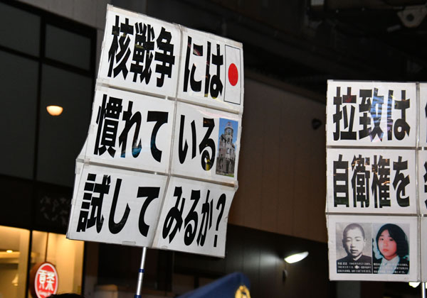 高市演説に集まった聴衆のプラカード(C)日刊ゲンダイ