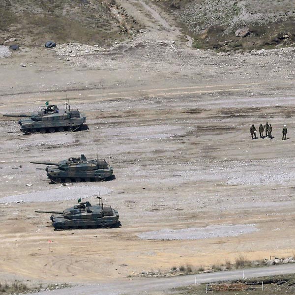 戦車訓練中に砲弾破裂事故があった大分県の陸自日出生台演習場。自衛隊員4人が死傷した(C)共同通信社