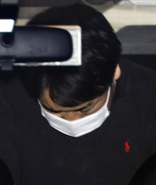 送検される国会議員秘書の成松圭太容疑者(C)共同通信社