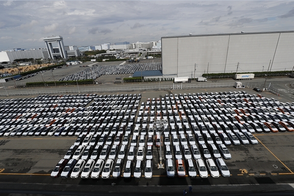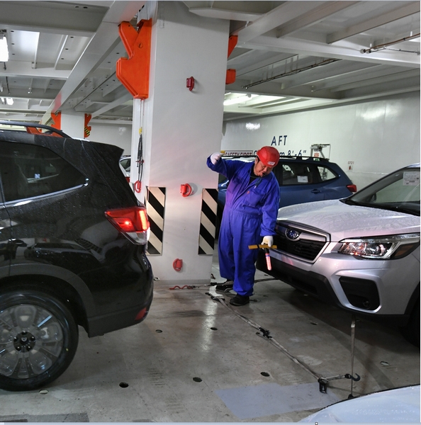 車両は前後30cm・両サイド10cmの間隔で並べられる(提供)スバル