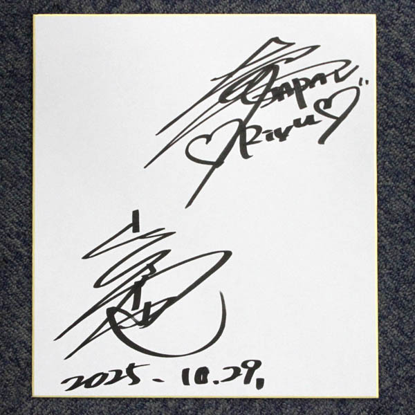 太田りゆ選手(左)と俳優・山口馬木也さん