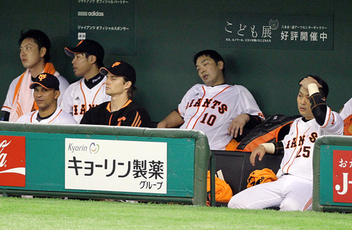 ベンチでぐったりの阿部(中央)/(C)日刊ゲンダイ