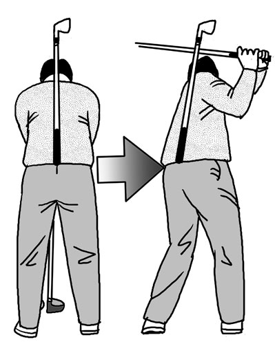 バックスイングは頭が右に動く