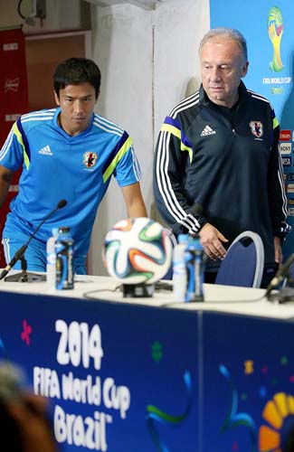 会見に臨む長谷部とザッケローニ (C)真野慎也/JMPA