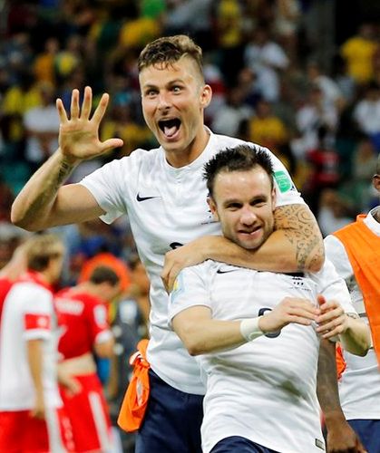 試合後も大ハシャギのジルー(奥)/(C)AP