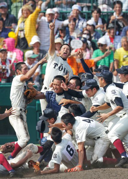 歓喜に湧く大阪桐蔭ナイン/(C)日刊ゲンダイ
