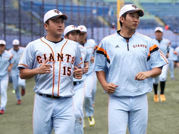 意気込む菅野(左は沢村)/(C)日刊ゲンダイ