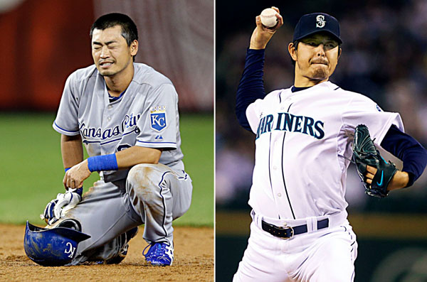 去就注目の青木(左)と岩隈/(C)AP