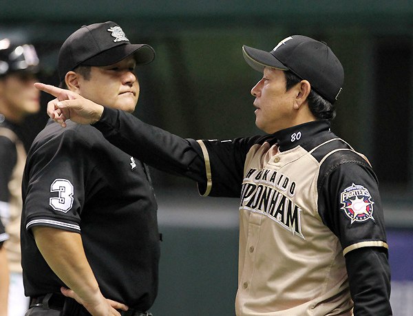 CS第5戦、審判に抗議する栗山監督/(C)日刊ゲンダイ