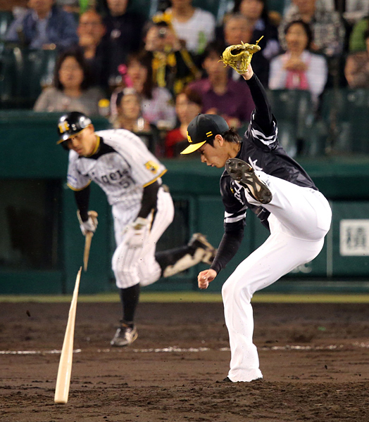 折れたバットをかわす武田翔太/(C)日刊ゲンダイ