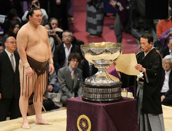 大鵬と並ぶ歴代最多タイの優勝を飾った白鵬/(C)日刊ゲンダイ