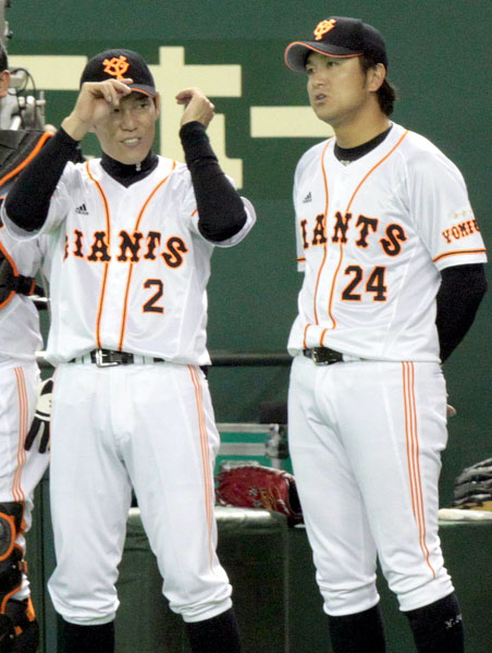慶大出身の高橋由(右)は同級生で亜大出身の井端をサポート/(C)日刊ゲンダイ