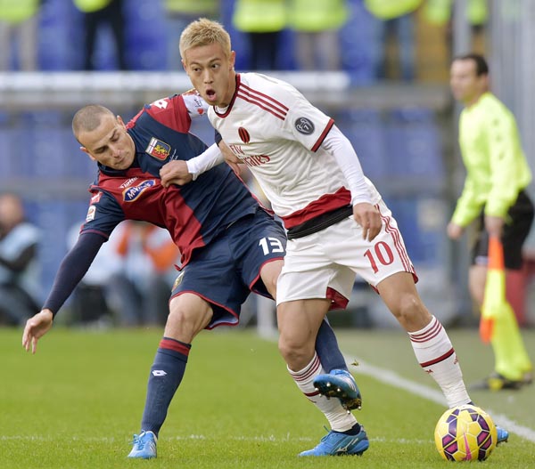 ジェノア戦でタイトなマークに苦しんだ本田/(C)AP
