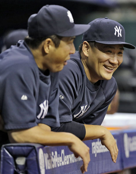 マー君(右)は惜しげもなく球種を伝授/(C)AP