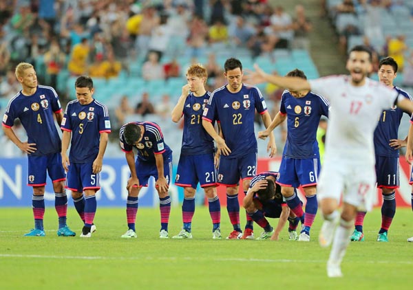 敗退が決まり本田はボー然、香川はしゃがみこんで頭を抱えた (C)六川則夫/ラ・ストラーダ