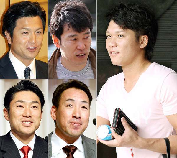 宮崎入りを延期した坂本(右)と高橋由、井端、金城、相川(左上から時計回りに)/(C)日刊ゲンダイ