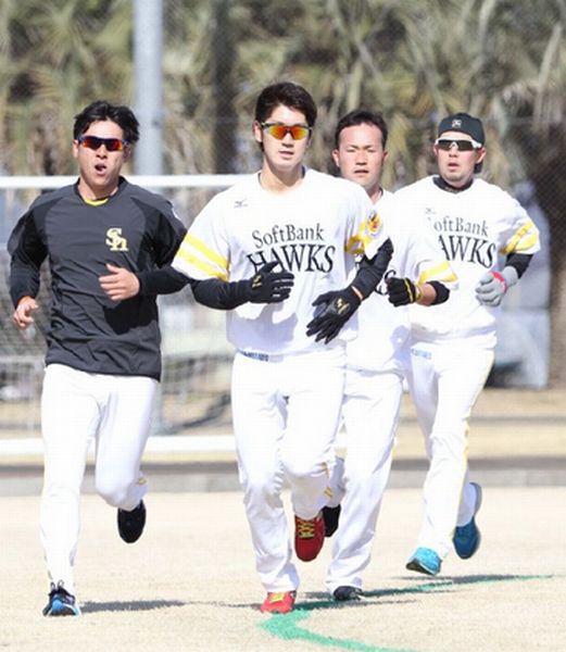 必死に「12分間走」をこなすソフトバンクの選手たち/(C)日刊ゲンダイ