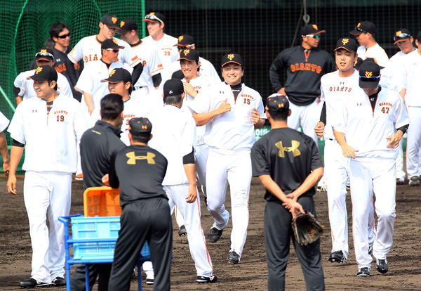 那覇入りし、練習を行った巨人ナイン/(C)日刊ゲンダイ