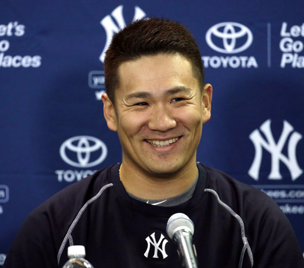 今季初会見のマー君が苦笑い 米メディアは「右肘」に質問集中