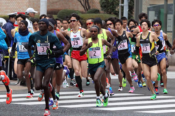スタート直後から集団を引っ張ったアフリカ勢 (C)日刊ゲンダイ