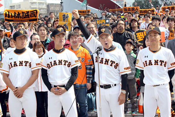 試合前のイベントで盛り上がる原監督と選手だが…(C)日刊ゲンダイ