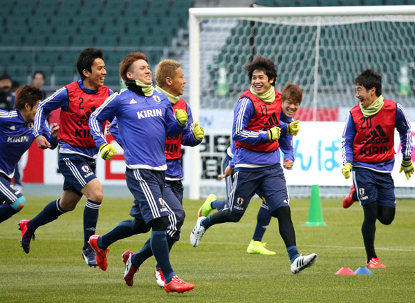 チュニジア戦を前に調整に励む日本代表選手(C)日刊ゲンダイ