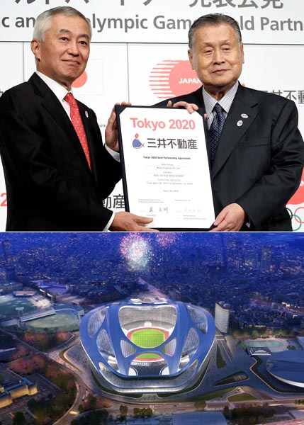 三井不動産の菰田正信社長と森喜朗五輪組織委会長(C)日刊ゲンダイ