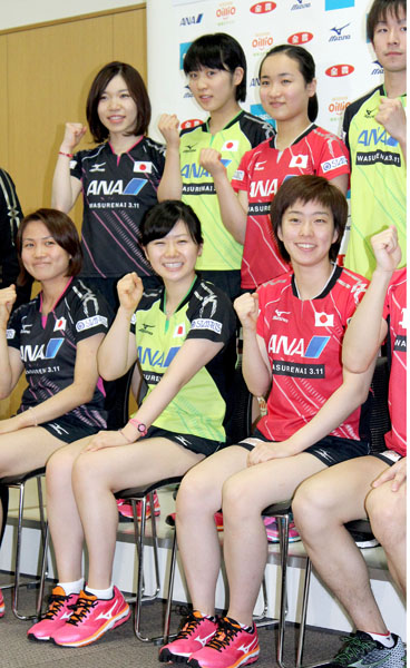 伊藤美誠(後列右から2番目)と平野美宇(同3番目)/(C)日刊ゲンダイ