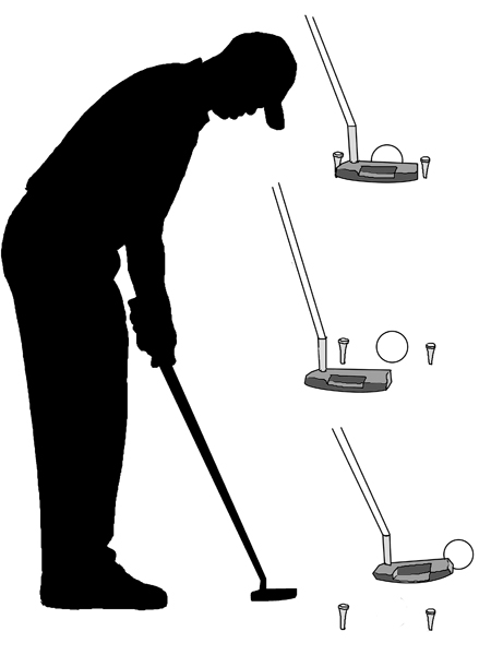 タイガー流 ティーペッグ2本の間にヘッドを通すパット練習