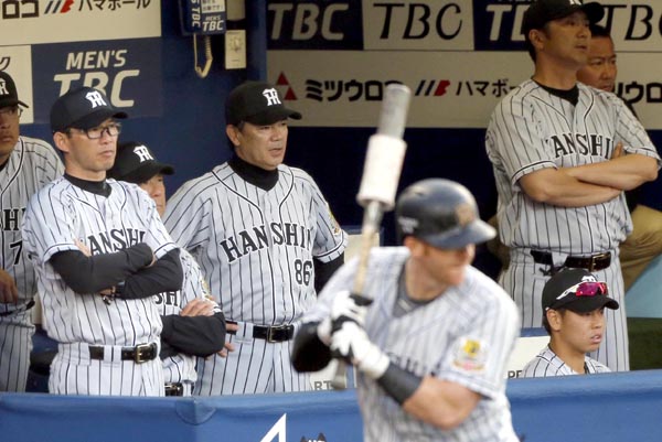 和田監督(中央)の周りで無表情のコーチ陣(C)日刊ゲンダイ