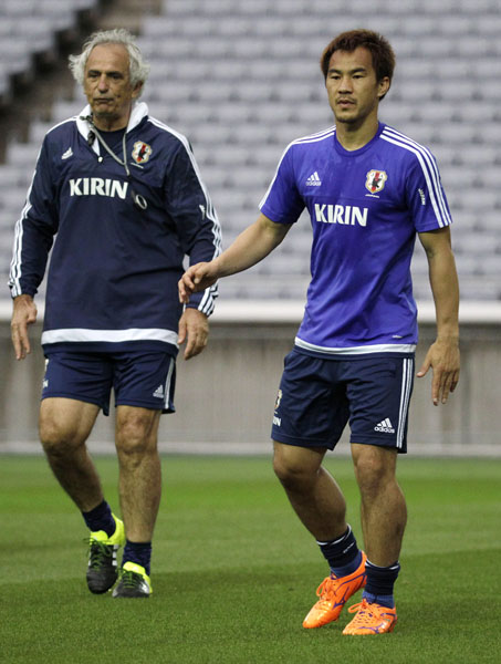 FW岡崎とハリルホジッチ監督(C)日刊ゲンダイ