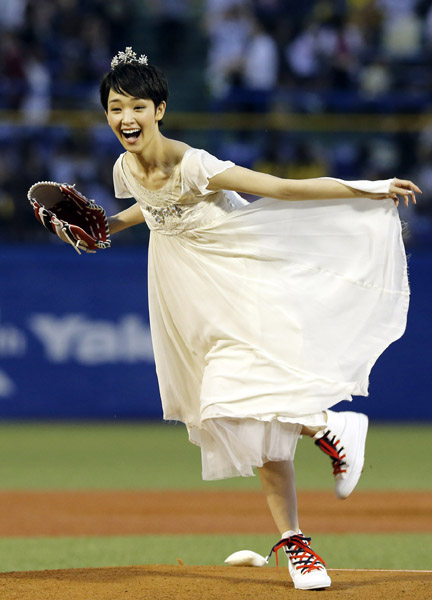 「結構いい球投げられた」と剛力彩芽(C)日刊ゲンダイ